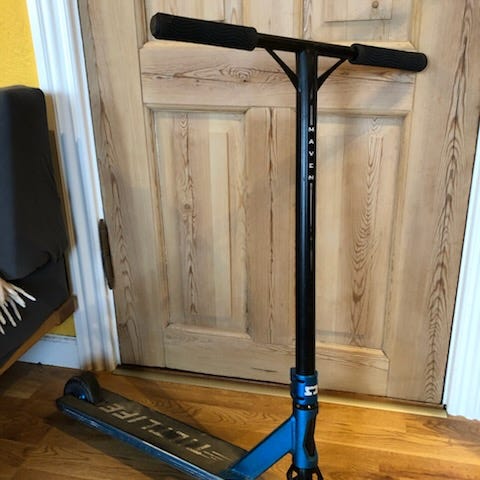 Brugt max tre gange. Købt som opgradering af min datters gamle løbehjul, men hun gider ikke løbe paa løbehjul mere, saa det har bare staaet i skuret i et aar.