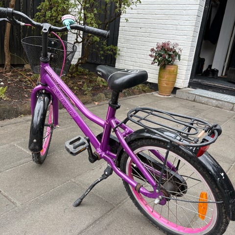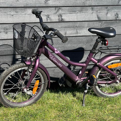 Pigecykel med 16" hjul, uden gear, med håndbremse og fodbremse.