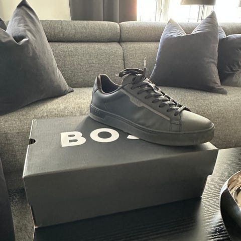 Flot og stilren sneaker i sort med diskrete Boss-detaljer og rød inderside, som giver et eksklusivt og sporty udtryk. Perfekte både til hverdag og pænere brug.