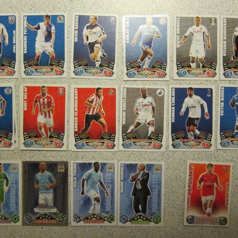 Min søn har følgende Match Attax Premiere League fodboldkort til salg (lysegrøn bagside):