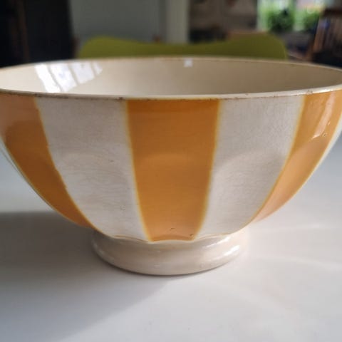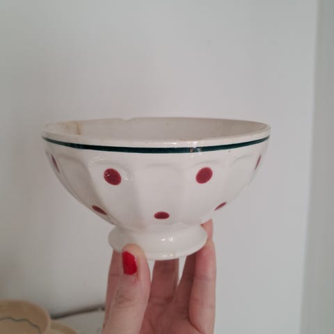 Fransk kaffeskål, gul med hvide prikker