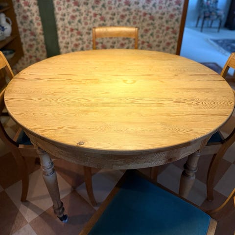 Flot rundt 180 cm. spisebord inkl. 7 stole