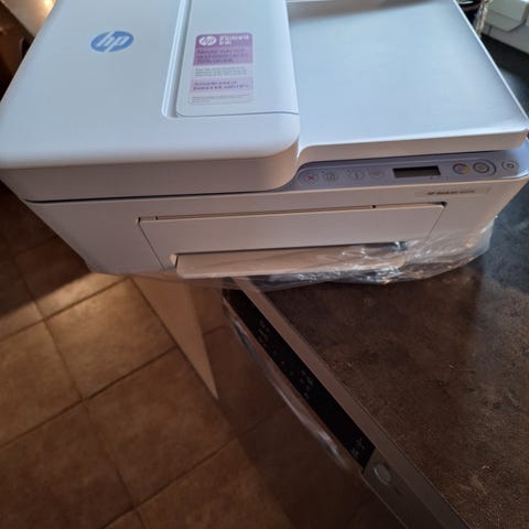 HP DeskJet printer inkl. blækpatroner. Leveres med strømkabel og startvejledning som vist på billederne.