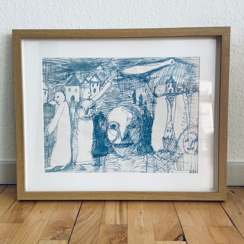 Originalt værk udført i oliekridt på papir af Wiliam Skotte Olsen, signeret WSO.