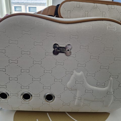 Pet travel crate, used once for a dog transported in airplane cargo. Shows minor surface scratches from airport handling, but remains in good working condition. All wheels and screws included.
