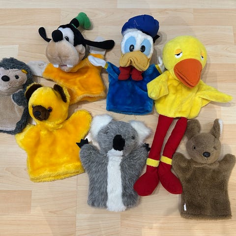 Hånddukke, TEATER HÅNDDUKKER, 6 STK. FLOTTE TEATER HÅNDDUKKER.