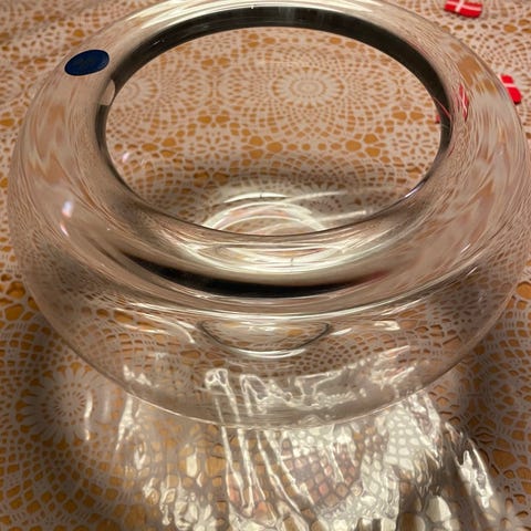Klassisk Holmegaard-design. Skålen måler H15 cm og Ø 24,5 cm.