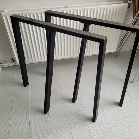 To sorte bukke H 69,5 * B 70 cm og en hvid bordplade B 60 * L 120 * H 3,5 cm.