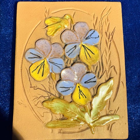 Komplet miniature relief i original æske ca 9x7cm. Kreeret af Aimo for svenske Jie, og fremstilles ikke mere, da værkstedet desværre måtte lukke 2010