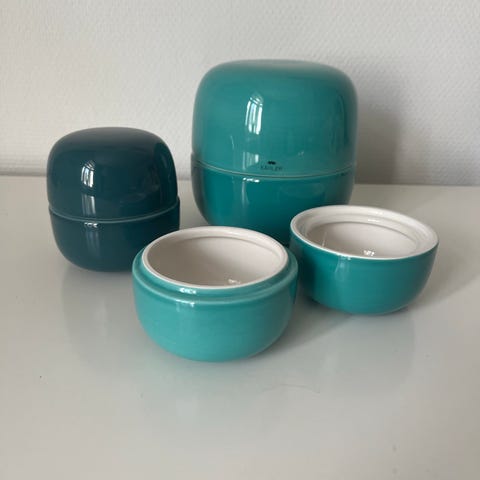 Kähler opbevaringsskål med låg i hvidt porcelæn. Elastikremmen mangler.