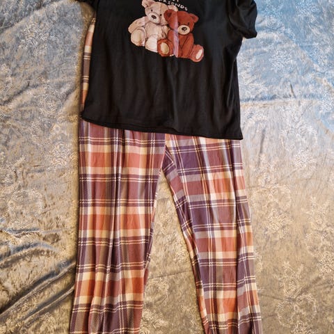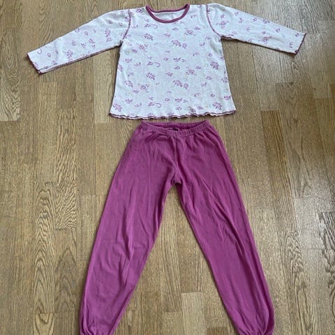 Nattøj str. 7-8 år. 2 små pletter nederst på det ene ben (se billede), fejler ellers intet og i pæn stand. Pris 35,-