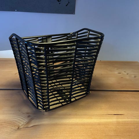 Stor Kvalitets Cykelkurv ca 40 x30x 20 cm og med bæreevne til 9 kg sort til bagagebæger og/eller cykelstyr . Med hank opbevaring lav evt indkøb direkte i denne kurv fin stand