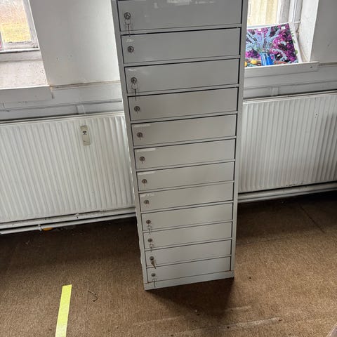 MøbelChefen metalskab med jalousilåge i lys metalfarve. Skabet har flere justerbare hylder indvendigt og en vandretgående jalousilåge på fronten. Egnet til opbevaring på kontor, lager eller i butik, hvor der er behov for aflåselig og pladsbesparende opbevaring.