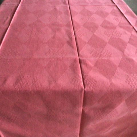 Fin damask dug fra georg jensen damask. Mønster af zigzag- og diamantformer. Materialet ser ud til at være et blødt, vævet tekstil. Farven er overvejende beige med toner af rosa mønster.,Afhentes i:,Røde Kors Aabenraa (546),Bemærk at mail, chat og beskeder ikke besvares, og varen skal købes på knappen "Gå til varen"