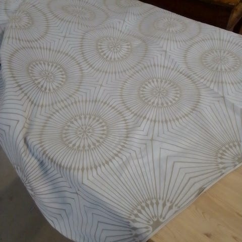 Fin lys rød dug i et vævet geometrisk mønster i nuancer af rosa og beige. Det er blødt og let.der er enkelte brugsspor, pris reguleret der efter. ,Afhentes i:,Røde Kors Aabenraa (546),Bemærk at mail, chat og beskeder ikke besvares, og varen skal købes på knappen "Gå til varen"