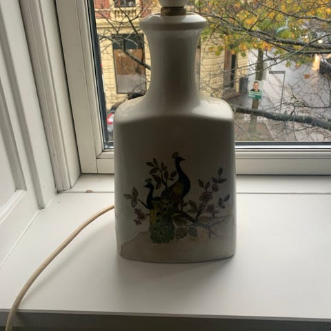 Lampens fod har en rund form og prydes af en malet fugl.