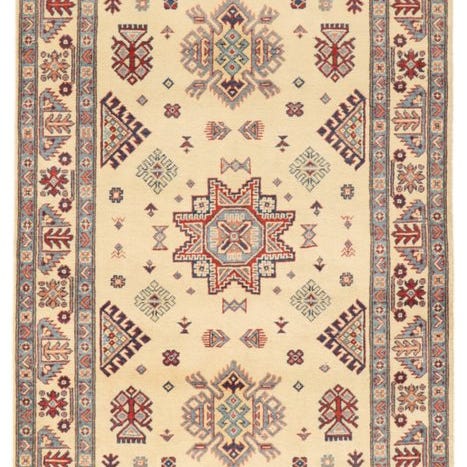 Kazak-tæppe fra Pakistan, uld på bomuld, håndkløvet, måler 201 x 148 cm, i meget god stand og professionelt renset. Klik på den blå "gå til varen" knap, for at købe eller byde på denne vare. Den samlede pris vil blive vist inden du afgiver dit bud.