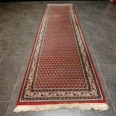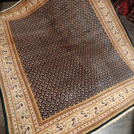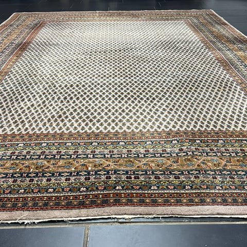 Indiafremstillet håndvævet Sarough Mir tæppe fra det 21. århundrede, 355 x 260 cm, uld på bomuld, 46 kg, i god stand. Klik på den blå "gå til varen" knap, for at købe eller byde på denne vare. Den samlede pris vil blive vist inden du afgiver dit bud.
