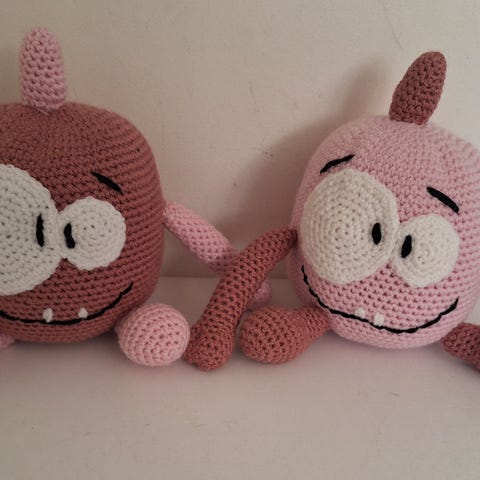 Hæklet bamse sæt i lyserød og rosa bomuld