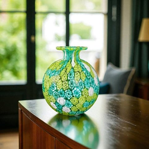 Murano-glas sfærisk vase – Millefiori-murriner Grøn Aquafarvet
