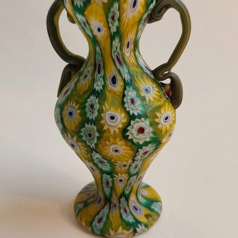 Denne håndlavede genstand er helt og holdent fremstillet i vores Murano-ovn, efter den gamle teknik med millefiori-murriner, et symbol på den venetianske glastraditions ypperste.
