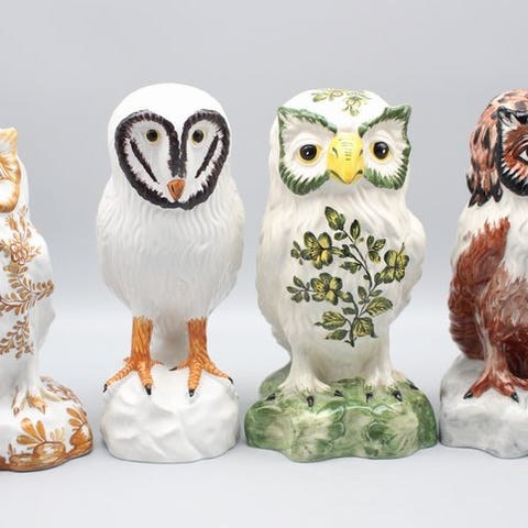 Et stort og værdifuldt parti ugler i sten, gips, faience, porcelæn og træ til samlere, nogle er signerede, partiet er i fremragende stand