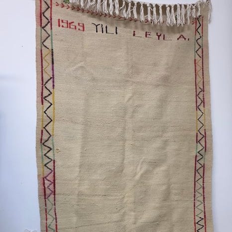 Denne håndvævede uldtæppe/reflekterer tekstil viser tidløs håndværk fra anatoliske vævetraditioner.