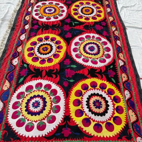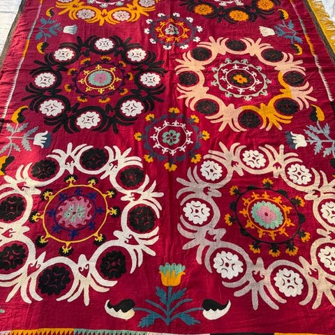 •Uzbek Suzani Tapestry Embroidery Boho Tablecloth, Wall hanging, Kelim Suzani. BadCover.
