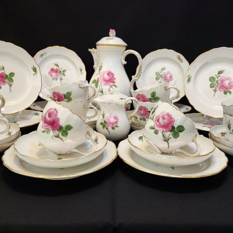 Velkommen! Vi præsenterer et kaffesæt Meissen til 6 personer med blå løgmønster.