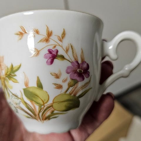 1 te-kande (indvendig kant beskadiget) 14 cm høj
