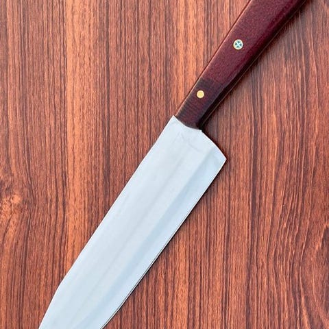 Denne premium kokkekniv fra Sam Knives har et elegant, præcisionshærdet blad af rustfrit stål designet til enestående skarphed og holdbarhed. Det brede bladprofil og den let buede kant gør det ideelt til at skære, hakke, terne og finhakke en række ingredienser med glidende, kontrolleret bevægelse. Dets satinfinish forbedrer ikke kun dets moderne udseende, men hjælper også med at modstå korrosion og opretholde langvarig ydeevne i både hjemme- og professionelle køkkener.