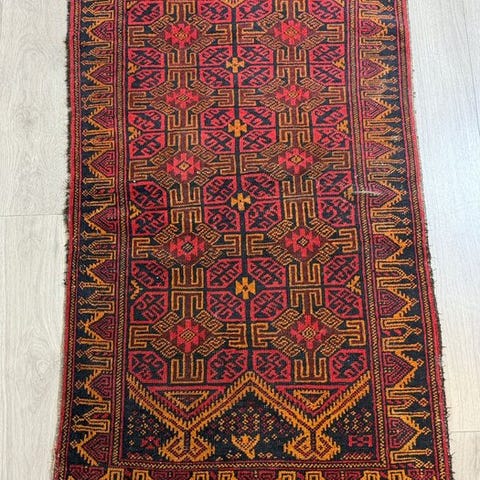 Et håndknyttet orientalsk tæppe Belutsch tilbydes.