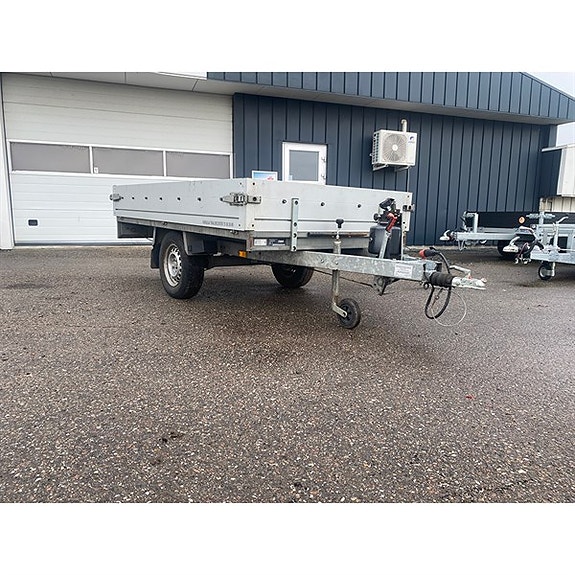 Robust dobbeltakslet trailer med stærkt, galvaniseret stål-chassis og kraftige sider i aluminium.