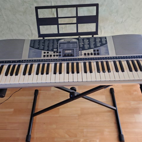 Ny ubrugt T-shirt med påtrykte tangenter og Keys to Happiness. God kvalitet.