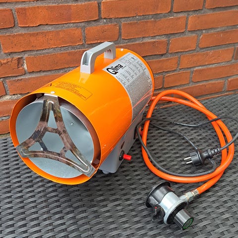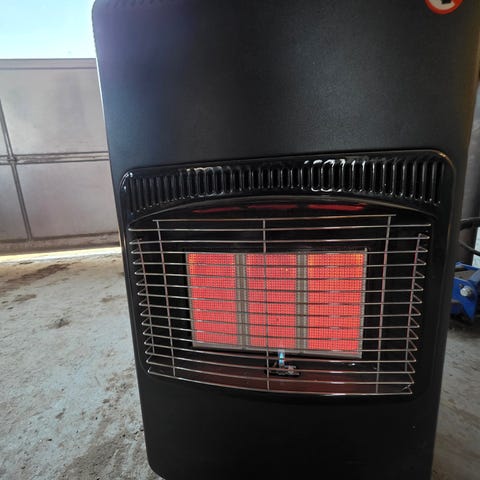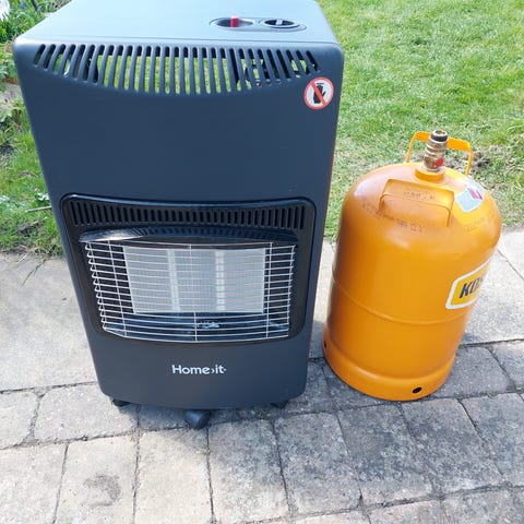 gasovn, en fritstående varmeovn designet til brug med en gasflaske.