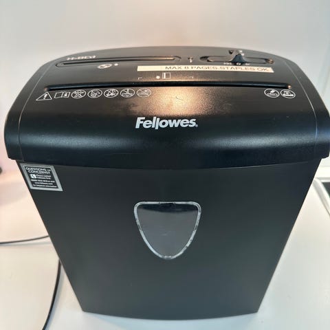 Fellowes 11C makulator i sort plast. Modellen er egnet til makulering af papir og har en smal indføringsåbning i toppen samt betjeningsknap til tænd/sluk og retur. Enheden har integreret opsamlingsbeholder med gennemsigtigt vindue på fronten, så fyldningsgraden kan ses. Makulatoren tilsluttes via netledning og er velegnet til brug på kontor eller hjemme, hvor der er behov for sikker destruktion af dokumenter.