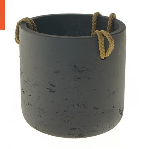Denne hængende potte er lavet af sort beton og har et reb til ophængning. Potten er cylindrisk og velegnet til små planter eller dekorationer. Den har en ru tekstur med synlige små huller, som giver et råt udseende. Diameteren er 15 cm.