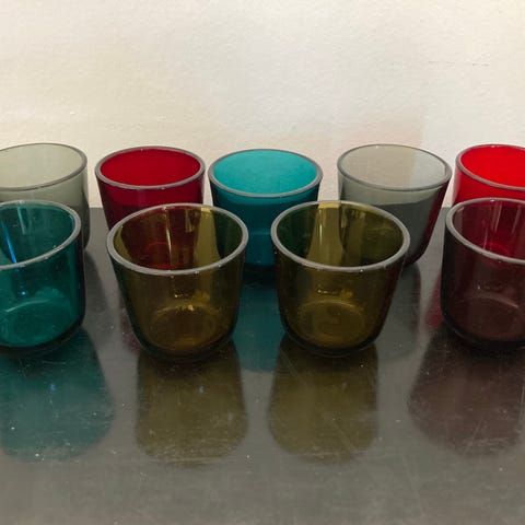 15 blande kulørte drikke glas - nogle finske - Kaj Franck - nogle franske - i meget pæn stand - sælges samlet