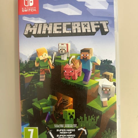 Jeg sælger her et eksemplar af Minecraft til Wii U. Der er på forsiden af cover spor efter et klistermærke og plastikken på bagsiden har en flænge på 5 cm.
