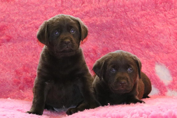Vi er så heldige, at vi har fået små brune Labrador hvalpe.