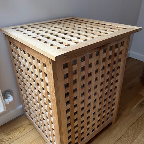 Vasketøjskurv i 3 sektioner 64x38x58. Sammenklappelig. Pæn stand, men med brugsspor. Nypris 199kr