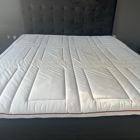 Den fejler ingenting og står flot, madrasserne er ikke rigtigt berørt af at jeg har sovet i den (nok pga. jeg er langt under vægtklassen), udover to pletter på undersiden af de øverste vendbare madrassers betræk, men kan ikke ses og er derfor heller ikke er til gene. De er ikke forsøgt fjernet. Hvis det er af betydning, kan jeg ved efterspørgsel godt prøve at få taget billeder af det.