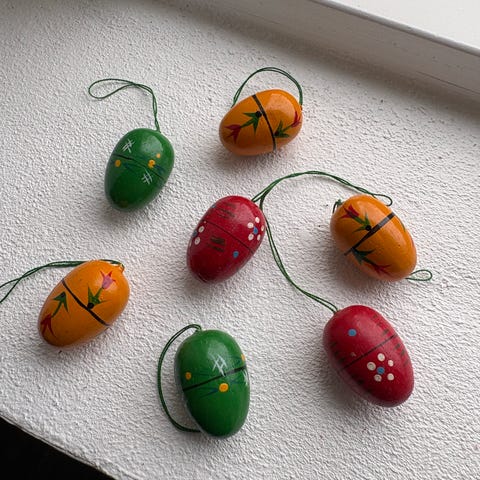 6 gamle smukke påskeæg i træ