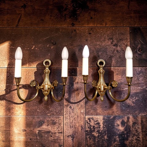 Krystal antik væg lampe messing