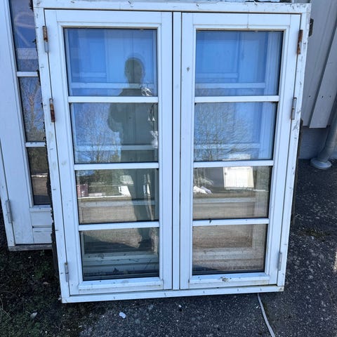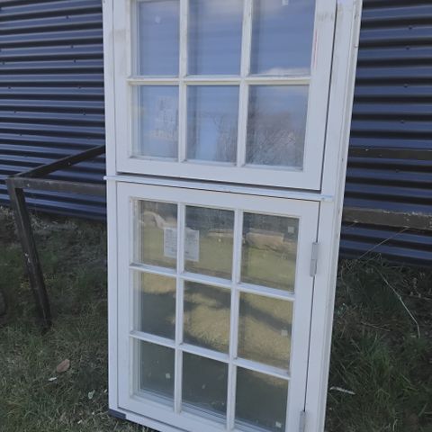 Kpk årg. 2011. Vinduer i hvid ramme med sprosser. Ruderne er opdelt i felter og monteret i hængslede rammer. Egnet til montering i bolig, udhus eller lignende, hvor der ønskes klassisk vinduesudtryk med sprosser. Yderligere mål og materialeoplysninger bør angives af sælger. Mål 103x173,5cm
