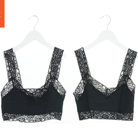 En hvid top uden ærmer med et blomstermotiv foran. Toppen har en rund hals og små flæsedetaljer ved skulderen. Den er let krøllet og har et mærke, hvor der står 'Little Sister' ved halsen.