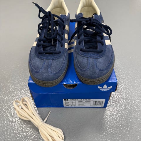 adidas Handball WM Detaljer marineblå læder/ruskind, logostempel på side, 3-Stripes-logo, rund tå, Sål: gummi 100% Ydre: ruskind 100% For: læder 100% Original kasse medfølger.