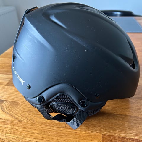 Alpina skihjelm i sort. Hjelmen har ventilationsåbninger i sider og top samt justerbar hagerem med kliklås. Indersiden er polstret for komfort. Egnet til brug ved ski og snowboard.