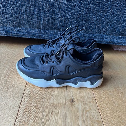 Ecco sneakers i str. 41. Skoene er grå med pink detaljer og elastiske snørebånd. Overdelen er i tekstil og syntetisk materiale med meshfelter, der giver ventilation. Egnet som hverdagssko eller lette fritidssko.