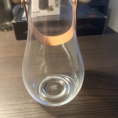 Denne glasvase fra Holmegaard har en diameter på 12,5 cm og en længde på 11,5 cm. Den er udstyret med en stilfuld læderhank, hvilket giver den et unikt og moderne udseende. Vasen er ideel til dekoration og kan bruges til blomster eller som et decorativt element i hjemmet.